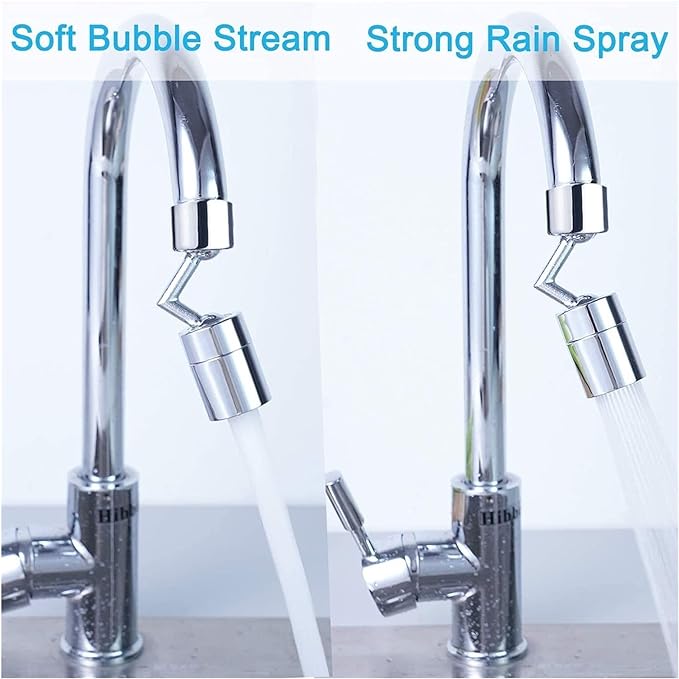 Rotación de 720 grados, rotación horizontal de 360 grados y rotación vertical de 360 grados: se puede girar arbitrariamente, y es más conveniente lavar su cara, artículos, frutas, verduras y lavabos. 2 Modos: modo de salpicadura de espuma y modo ducha impulso.