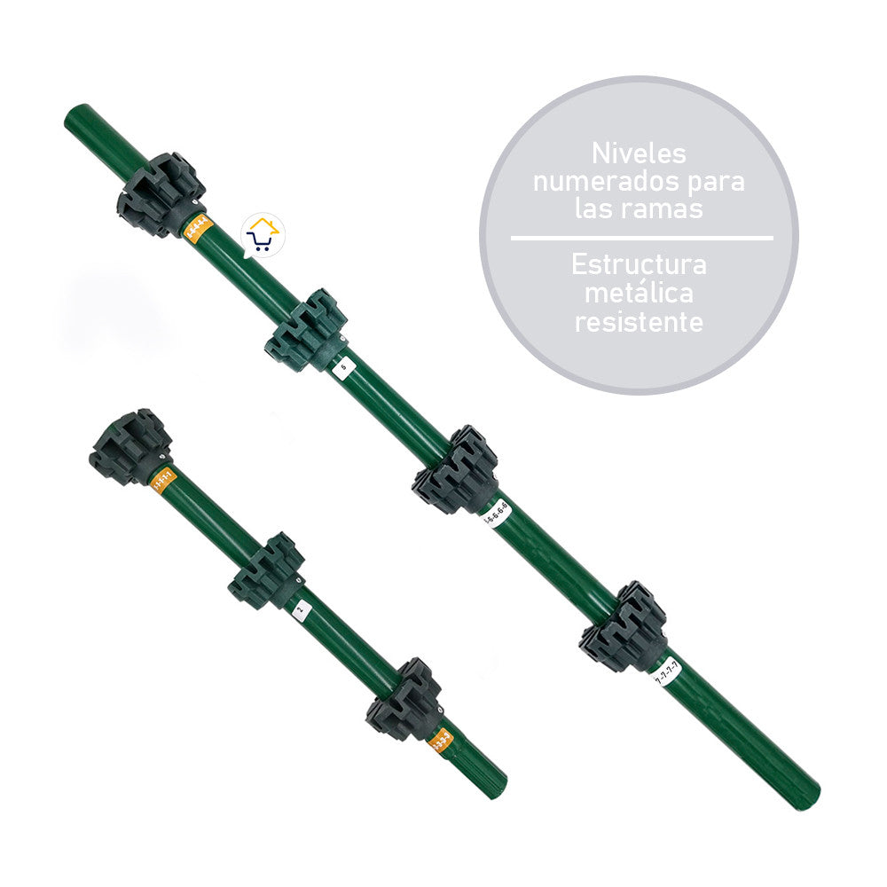 Paso 2: Ensamble los tubos que conforman el tronco, tenga en cuenta que cada soporte de las ramas está marcado con un número. Arriba debe quedar el marcado con el número (1) y va aumentando hacia abajo.