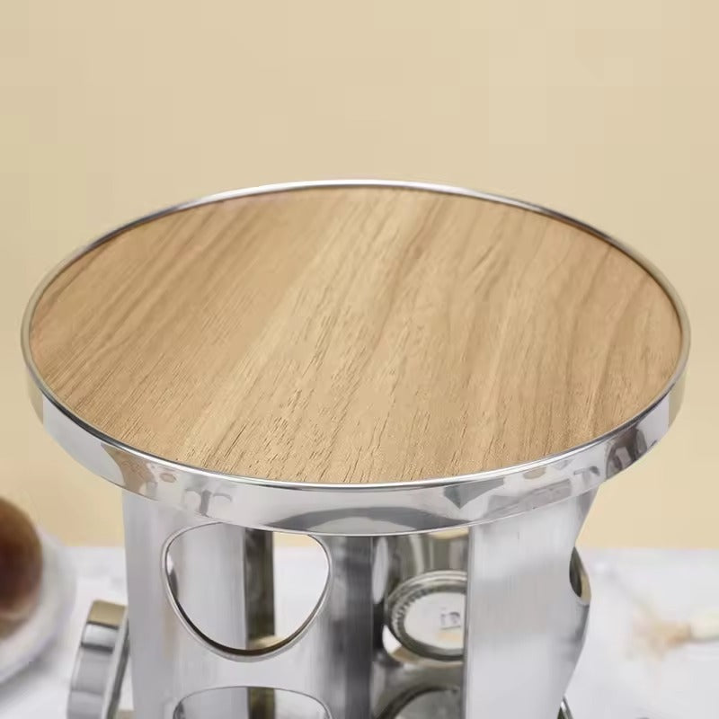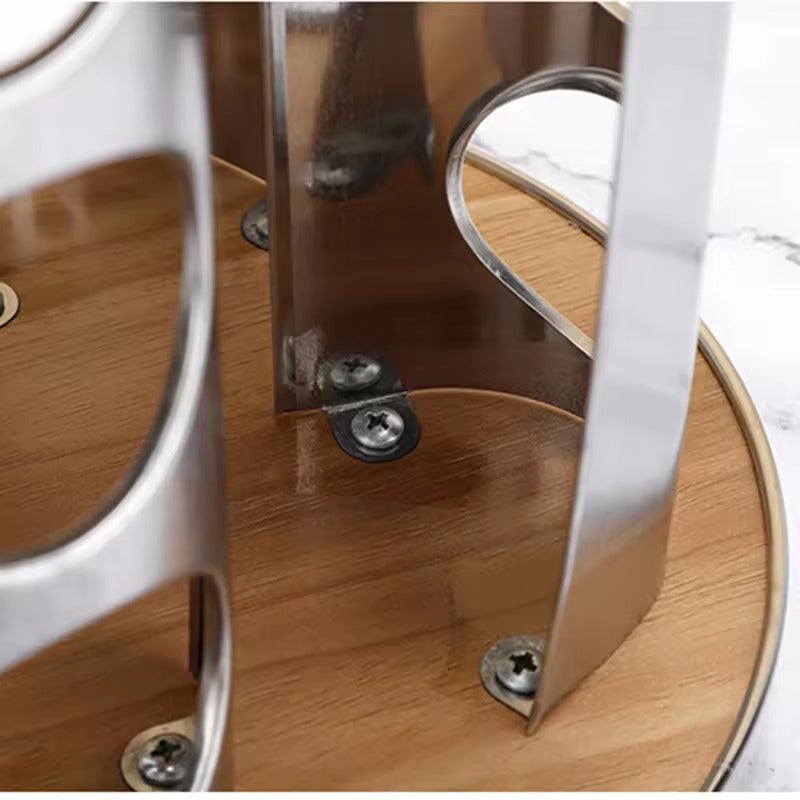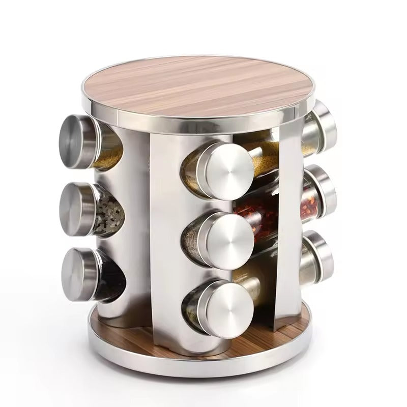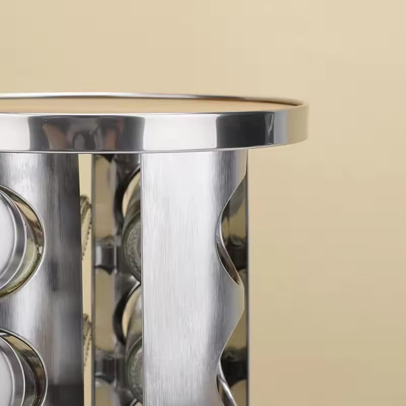 Mantén frescas y salvo tus especias, condimentos y demás complementos de tu cocina con este Contenedor Giratorio de Especias x 12 Frascos. Hecho en vidrio y acero inoxidable, lo que permite una óptima preservación y ahorrar espacio y de paso darle un toque decorativo a tu cocina.