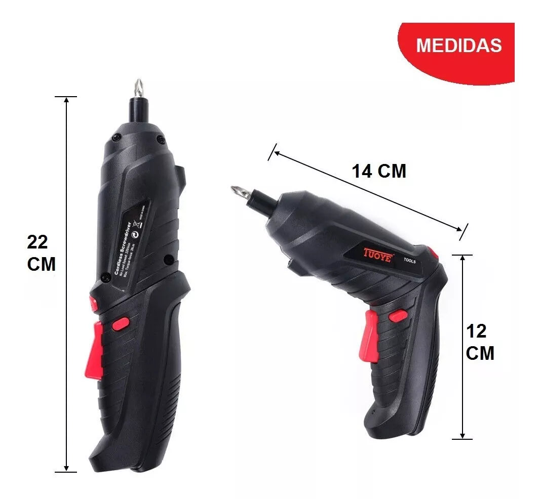 Destornillador Atornillador Eléctrico Inalámbrico Recargable-------Este destornillador es perfecto para practicoizarlo como una herramienta versátil y rápida gracias a las 47 piezas adaptables que se ajustan con facilidad en su punta para diferentes labores. Además, este destornillador tiene la capacidad de ser recargable teniendo su cargador y entrada incluidos a base de energía corriente, permitiendo que su uso sea práctico y rápido. Medidas destornillador:-12cm de largo-14cm de ancho Medidas destornillador derecho:-22cm de largo Medida CABLE:-50cm de largo.*CARACTERÍSTICAS:-Construcción de peso ligero-Diseño de mango en T para un control mas fácil-Luz LED-Tiempo de carga: 2-3 horas-Voltaje: 3,6 voltios-Torque: 3 N.m*