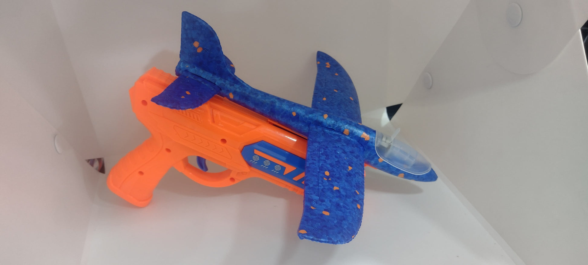 Ficha Técnica: Material de la Pistola: Plástico ABS Material del avión: Icopor