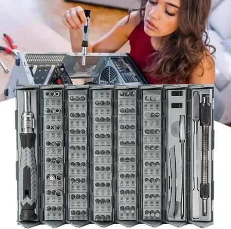 - Incluye: un total de 128 piezas, que abarcan una amplia gama de puntas de destornillador y accesorios, adecuados para trabajos de precisión, reparaciones electrónicas, mantenimiento doméstico y más.