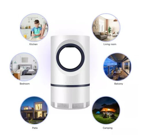 Este exterminador de mosquitos practicoiza la querida luz UV de 365 mm de longitud de onda de los mosquitos, que atrae fácilmente a los mosquitos y luego los aspira por la bandeja inferior para secarlos al aire. practicoiza un método físico para matar a los mosquitos, que no es tóxico. Es seguro para los seres humanos y el medio ambiente, a la vez que mata eficazmente insectos, mosquitos, moscas, polillas y otros insectos. Alta eficiencia: esta lámpara practicoiza la popular luz UV de 365 mm de longitud de onda de los mosquitos para atrapar mosquitos de forma precisa, eliminando fácilmente los mosquitos y proporcionando un entorno seguro y cómodo Una vez que el mosquito se acerca al túnel de viento, el fuerte remolino de aire lo aspira hasta la bandeja inferior y lo seca al aire Alimentación USB: su interfaz USB universal es adecuada para todo tipo de enchufes de carga, como cargadores, ordenadores portátiles o bancos de energía portátiles Bandeja almacenamiento: la bandeja de almacenamiento extraíble se puede quitar y limpiar fácilmente. Se recomienda limpiarlo una vez a la semana.