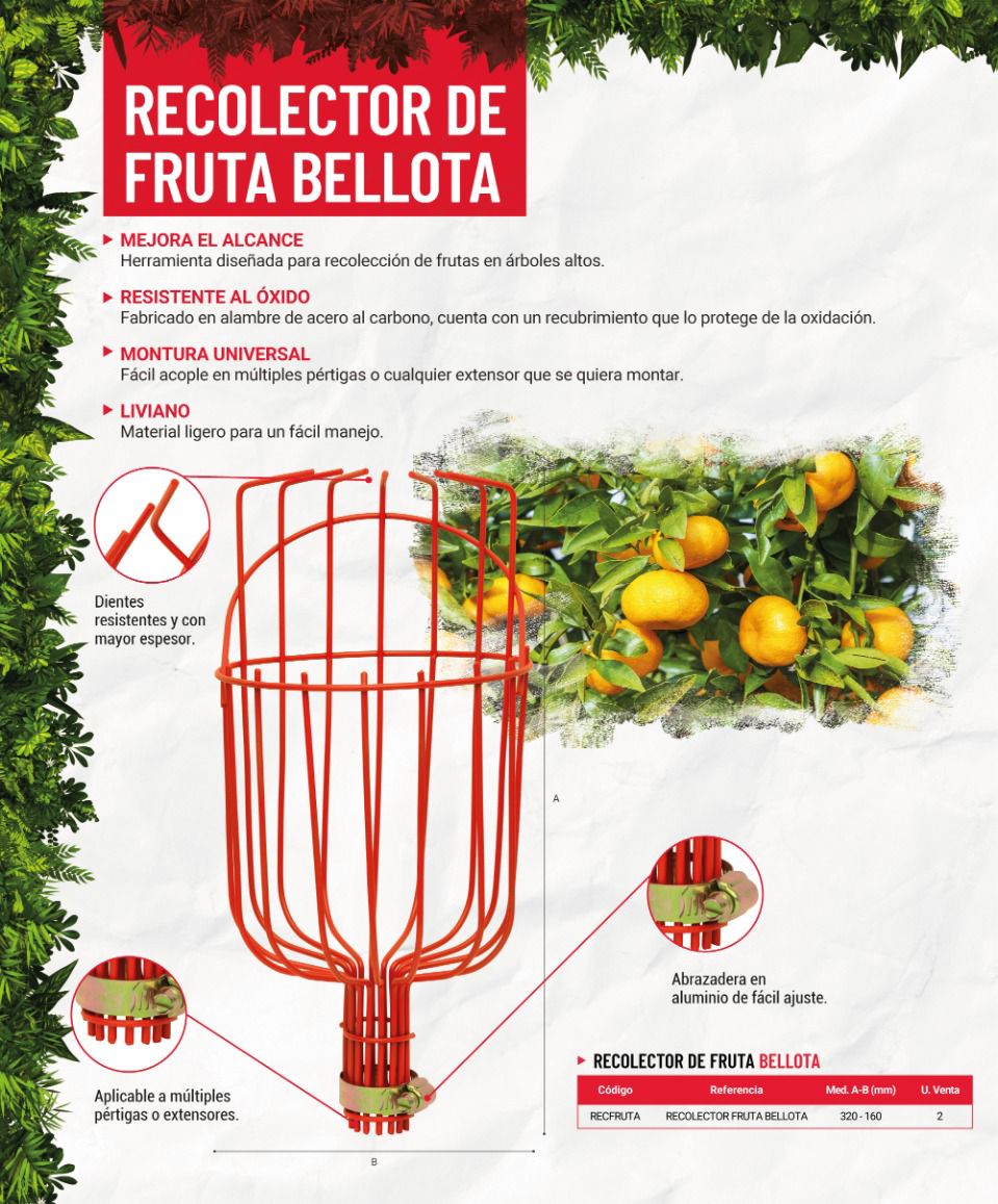 En resumen, el Recolector De Frutas Metálico Bellota es una inversión inteligente para aquellos que buscan eficiencia y durabilidad en sus herramientas de jardinería. Su diseño práctico y su construcción de alta calidad te ayudarán a recoger frutas de manera más fácil y rápida, mejorando tu productividad y disfrute en el jardín.