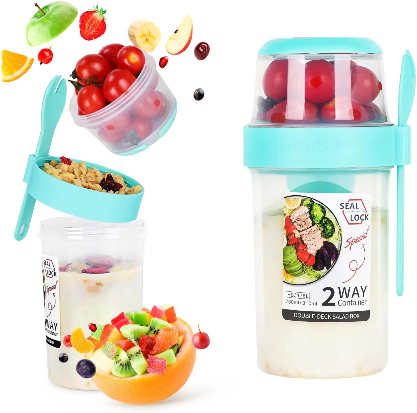 Diseño multifuncional: estos recipientes de avena con tapas para pasar la noche adoptan un sistema de bloqueo giratorio, diseño de separación en seco y húmedo de 2 capas, la taza transparente buenior puede almacenar cereales, avena, avena, frutas, nueces y también se puede practicoizar como un tazón para servir. El recipiente de yogur inferior se practicoiza para alimentos líquidos o pasta, como leche, sopa, café, jugo, gachas de avena y así sucesivamente. El diseño de separación seca y húmeda puede mantener perfectamente la comida deliciosa y fresca, no se remoja ni se vuelve blanda