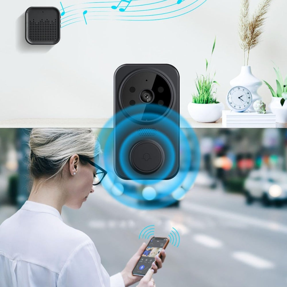 Timbre inteligente inalámbrico con función de foto y vídeo. La funcionalidad del dispositivo es muy amplia, gracias al módulo wifi incorporado, puedes usar la aplicación en tu teléfono inteligente para ver quién llama a tu puerta y comunicarte con el huésped, incluso si no estás en casa.